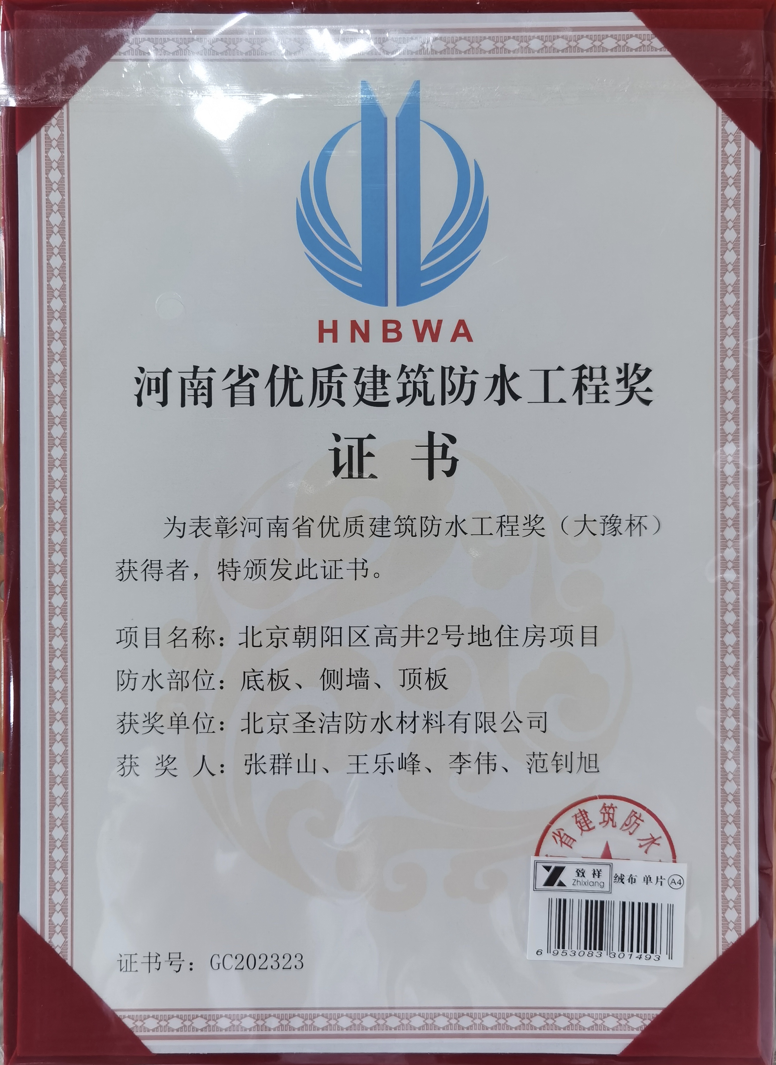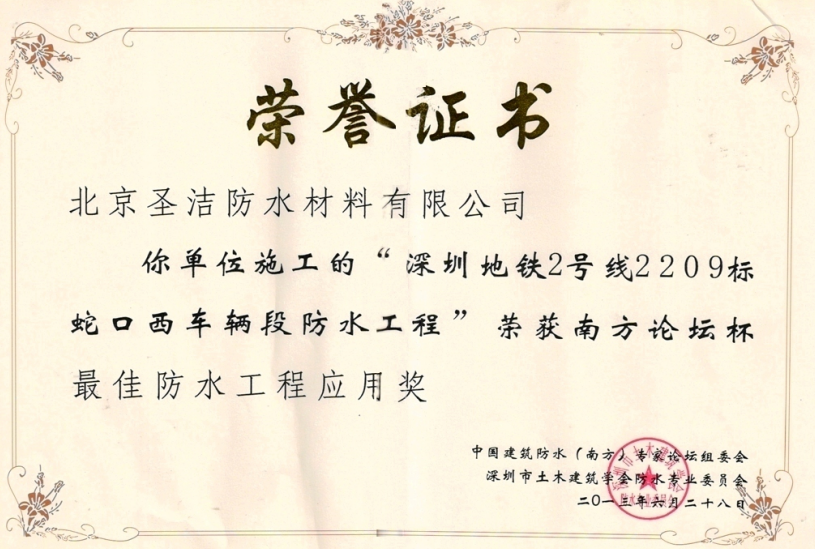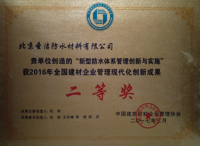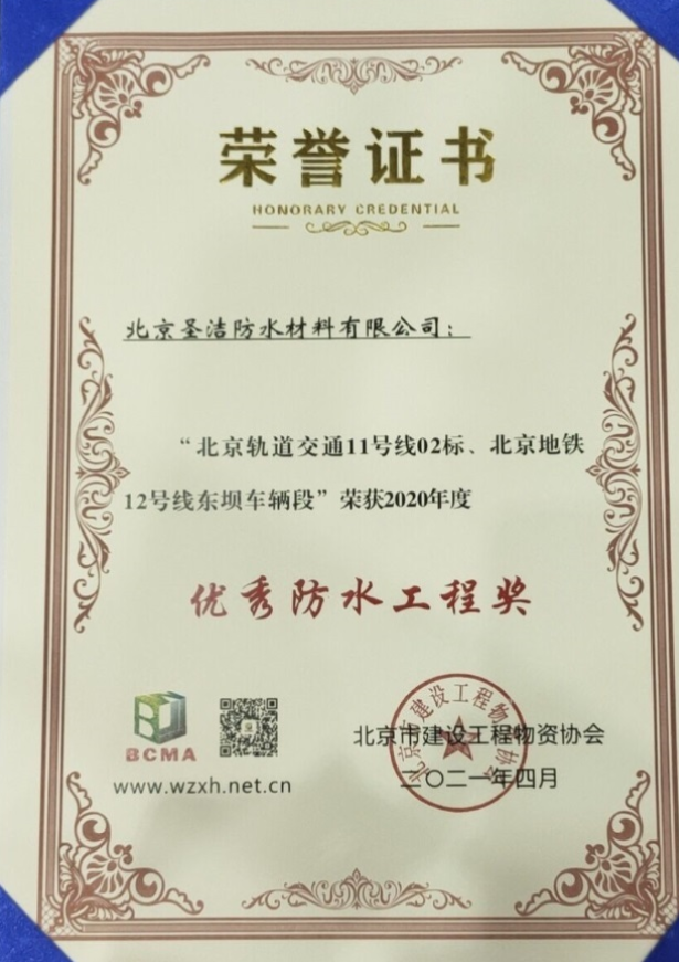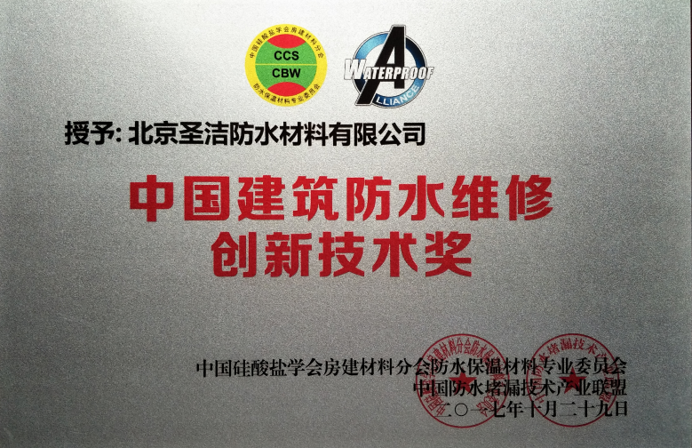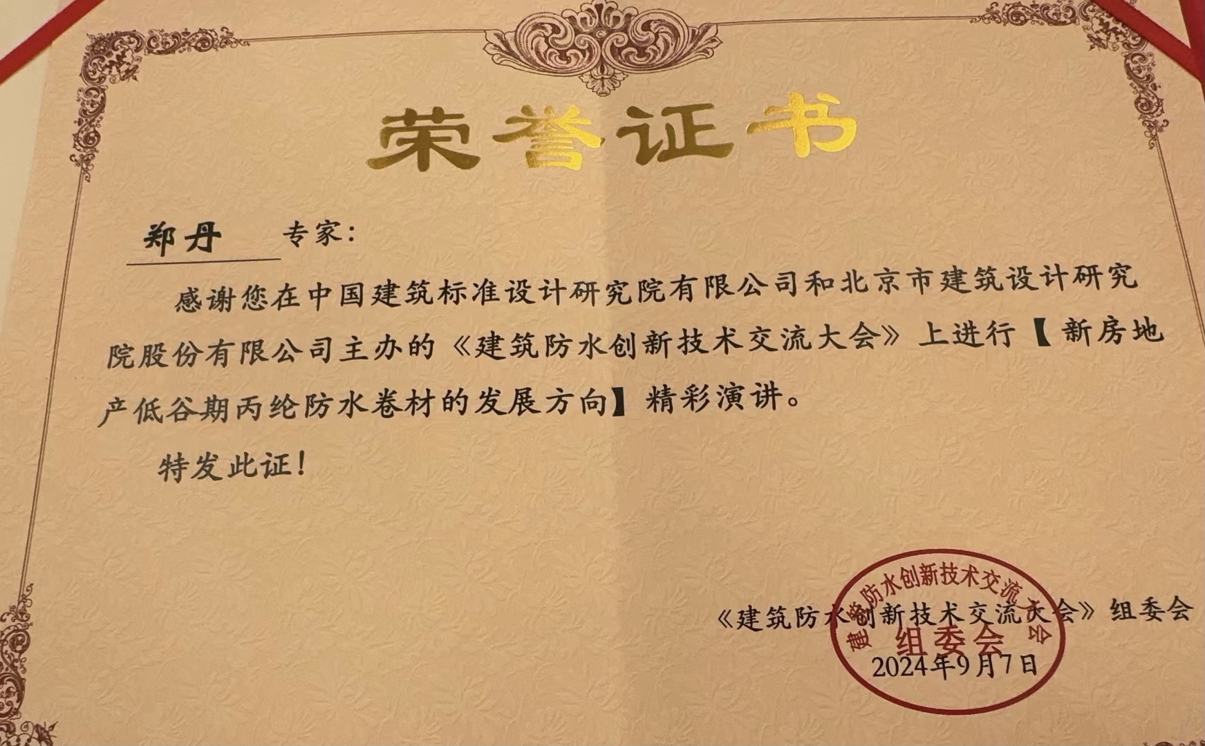 • 中國建筑學會建筑防水學術委員會榮譽證書