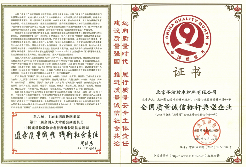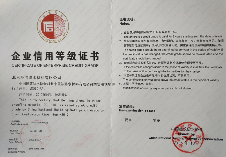 北京圣潔防水材料有限公司成立于1999年,注冊資金2.53億元。致力于系統解決防水問題的探索和研究,經過二十多年的積累與沉淀,圣潔防水已發展成為集產品研發、生產、銷售、施工于一體的規模化公司,是中國防水二十強企業,擁有國家專業防水一級資質。 圣潔防水生產基地占地面積2萬平米,全體員工320人,其中施工人員280人,為員工提供五險保障,公司是中國建筑防水協會常務理事單位、中國建筑業協會建筑防水分會、中國建筑學會、中國質量檢驗協會建材專業委員會會員單位,通過了ISO9001國際質量體系認證、ISO14001環境管理認證。被中國建材市場協會譽為“全國建材系統質量、服務、信譽AAA企業”。歷年國家標準《地下工程防水技術規范》、《地下防水工程質量驗收規范》和《屋面工程技術規范》、《屋面工程質量驗收規范》的參編單位,截至目前為止,圣潔防水主編或參編的國標、行標、地標、團標已達106本。