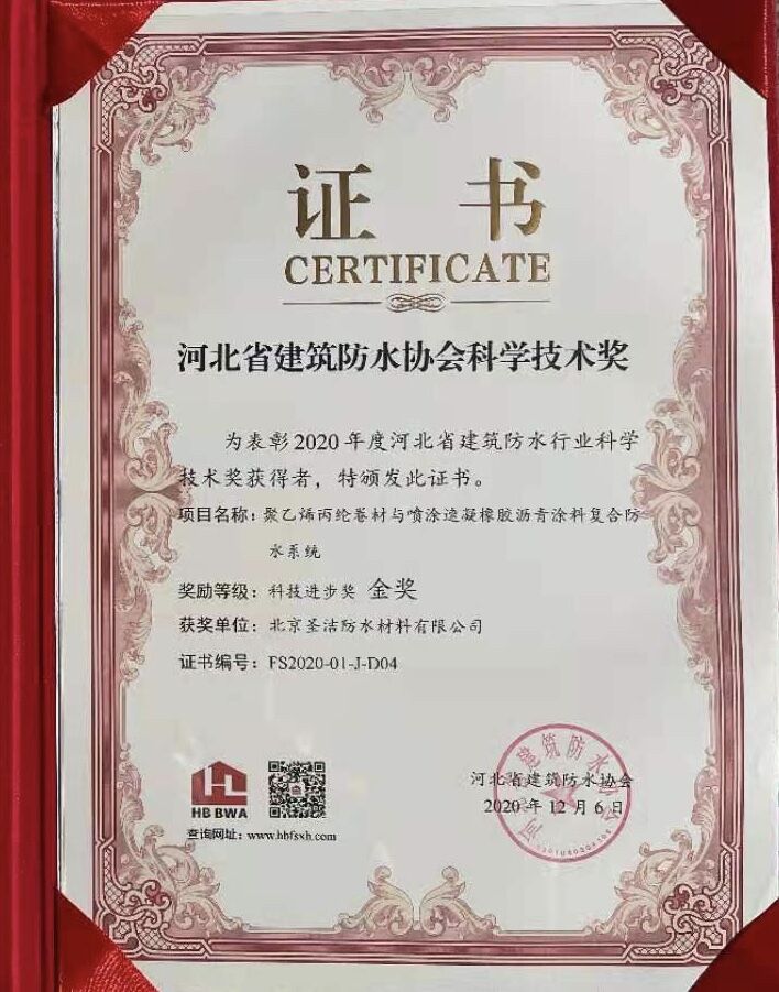• 河北省建筑防水協會科學技術獎-科技進步獎