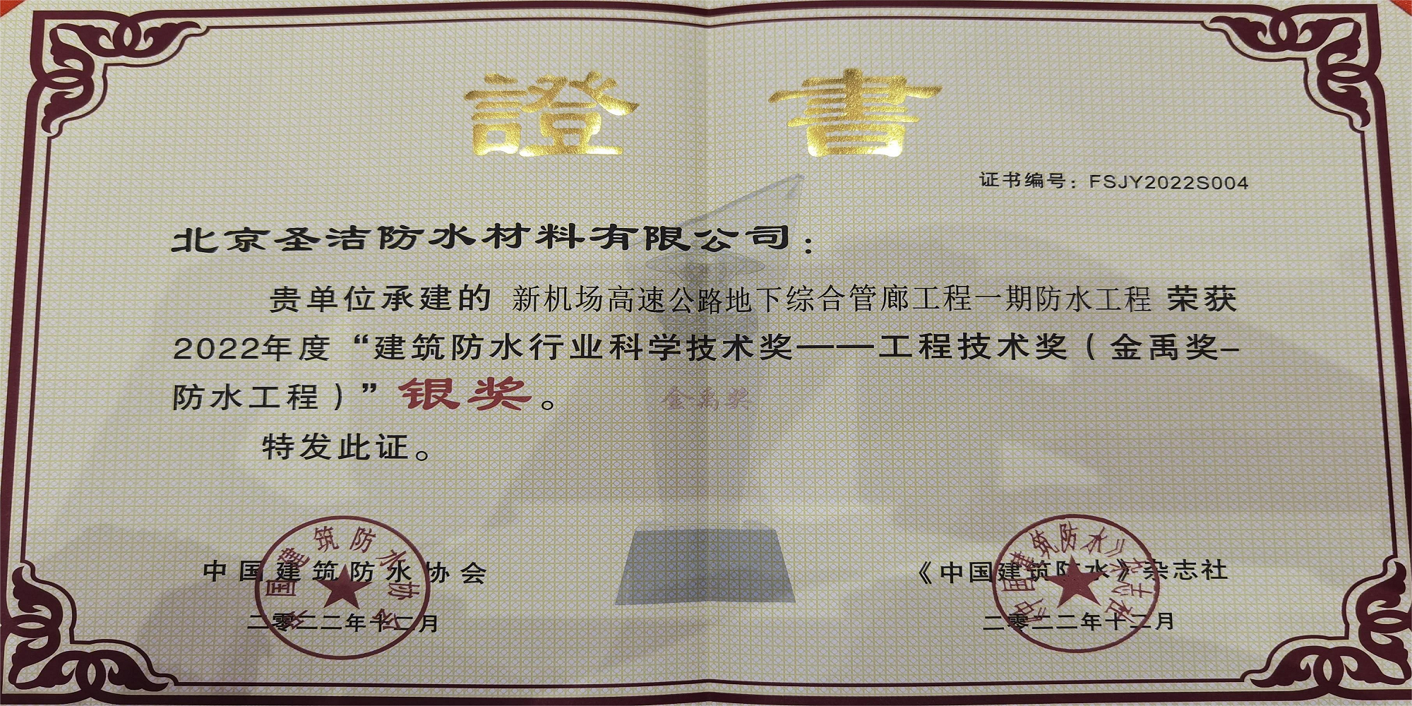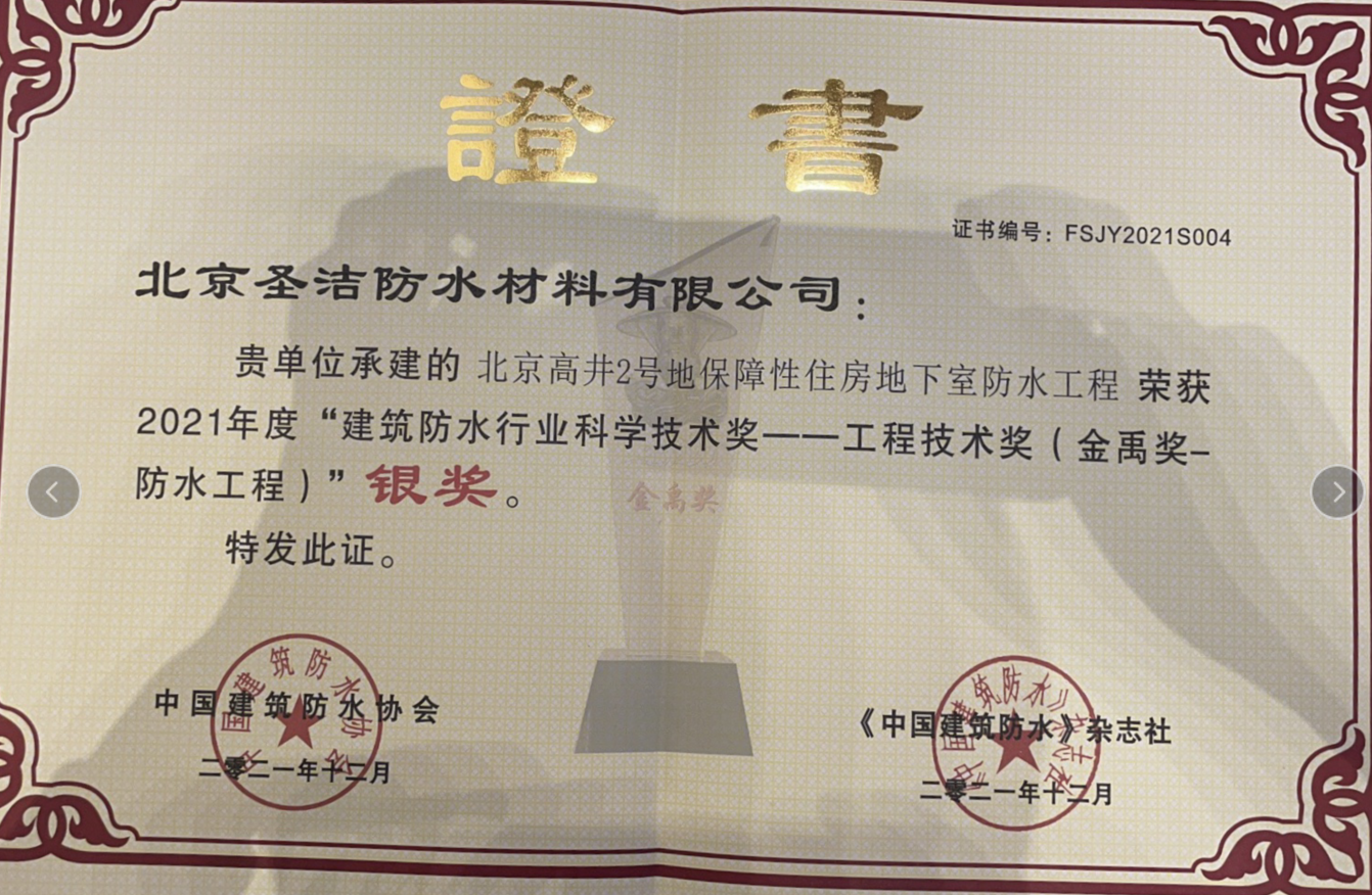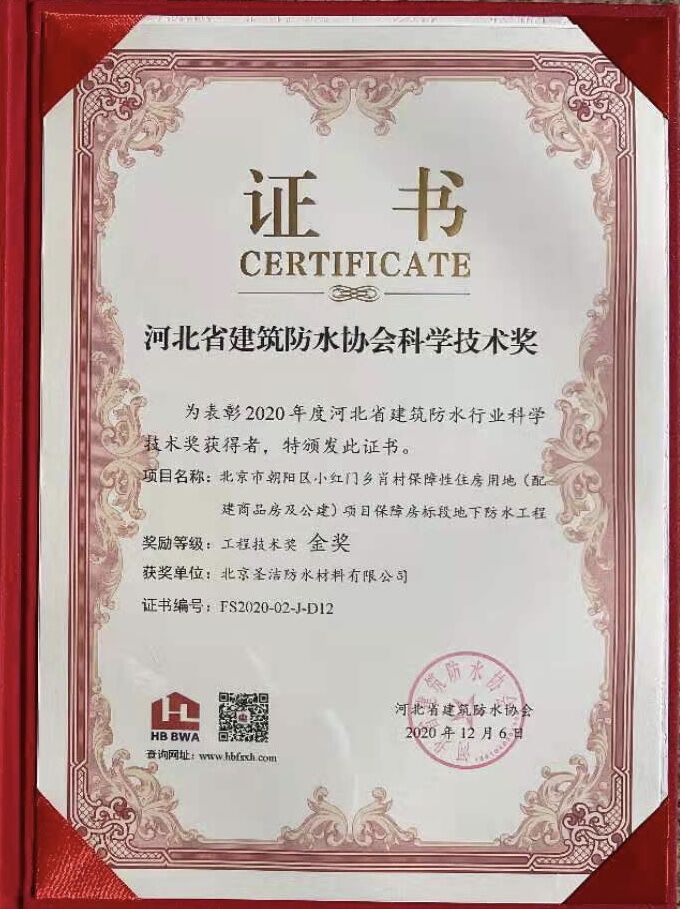 • 河北省建筑防水協會科學技術獎-工程技術獎