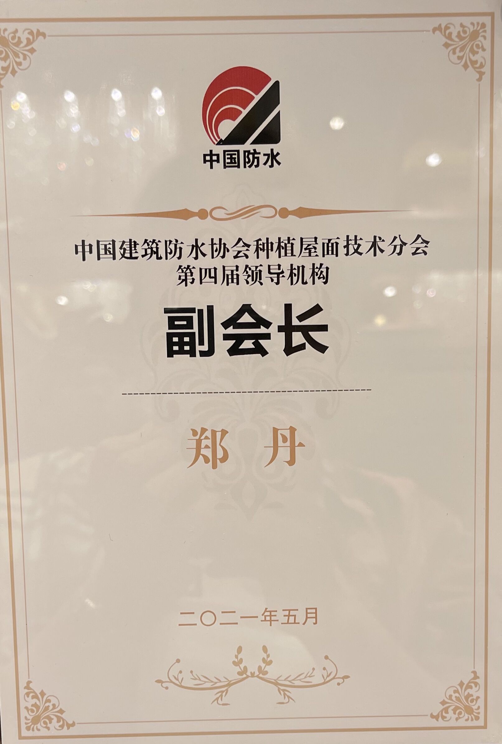 • 鄭丹中國建筑防水協會種植屋面技術分會副會